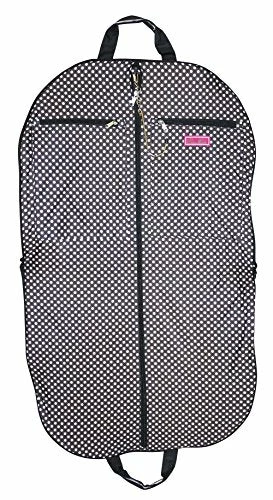 Details: Take your dress clothes with you confidently on vacation with this stylish garment bag! This piece of lightweight luggage is great for jet setters and can be used for a quick, close by staycation or for a weekend excursion to your favorite retreat. Made out of quilted cotton fabric in a chic print. This garment bag folds in half and can be hung by its metal hook. The interior of this bag features multiple zipper pockets to hold shoes and accessories. Perfect for transporting cheer uniforms or theatre costumes to and from while keeping them clean and wrinkle free! Organize your closet and keep delicate, high quality items neat and pristine.
