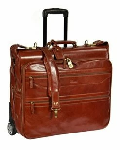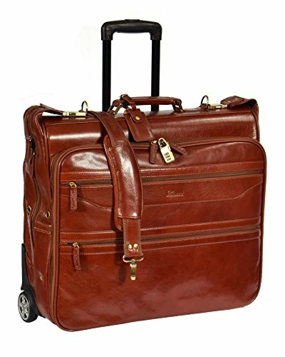 Details: An exclusive high quality suit/ garment carrier, made using the finest quality full body cow vegetable tan leather. Ideal for frequent Business travellers, this bag features, inside two large pockets, three pockets at the front, special hook to hold inside cupboard, inside hook to hold the suit/ garments, telescopic Handle, 2 wheeled. 100% Real Leather Measurements: Hx54, Lx55, Wx20 CM