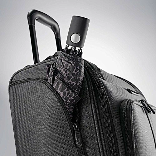 - Two mesh corner pockets for small personal items on Wheeled Garment bag. Compression straps keep clothing neatly packed while traveling with Spinners. Padded top and side carry-handles provide comfort when lifting a fully-packed case.