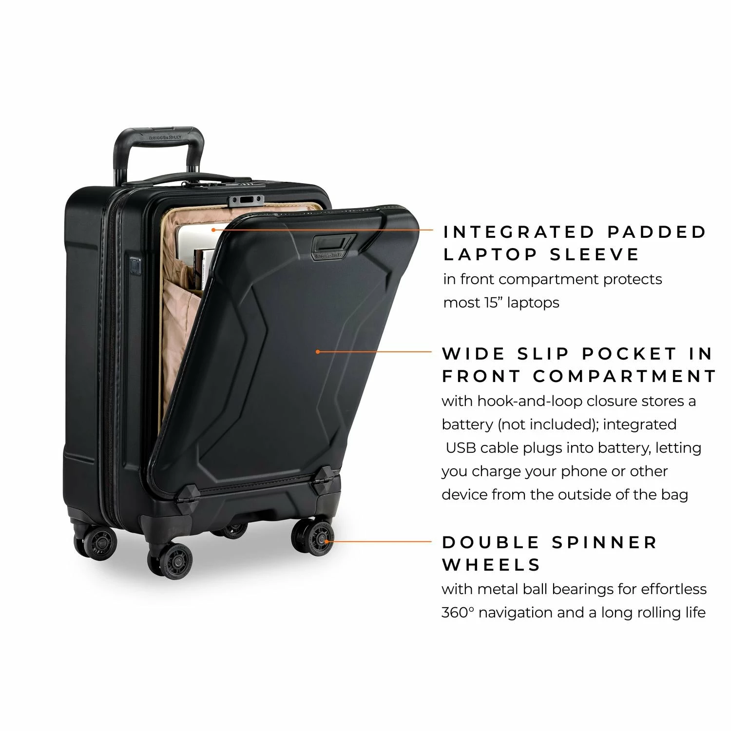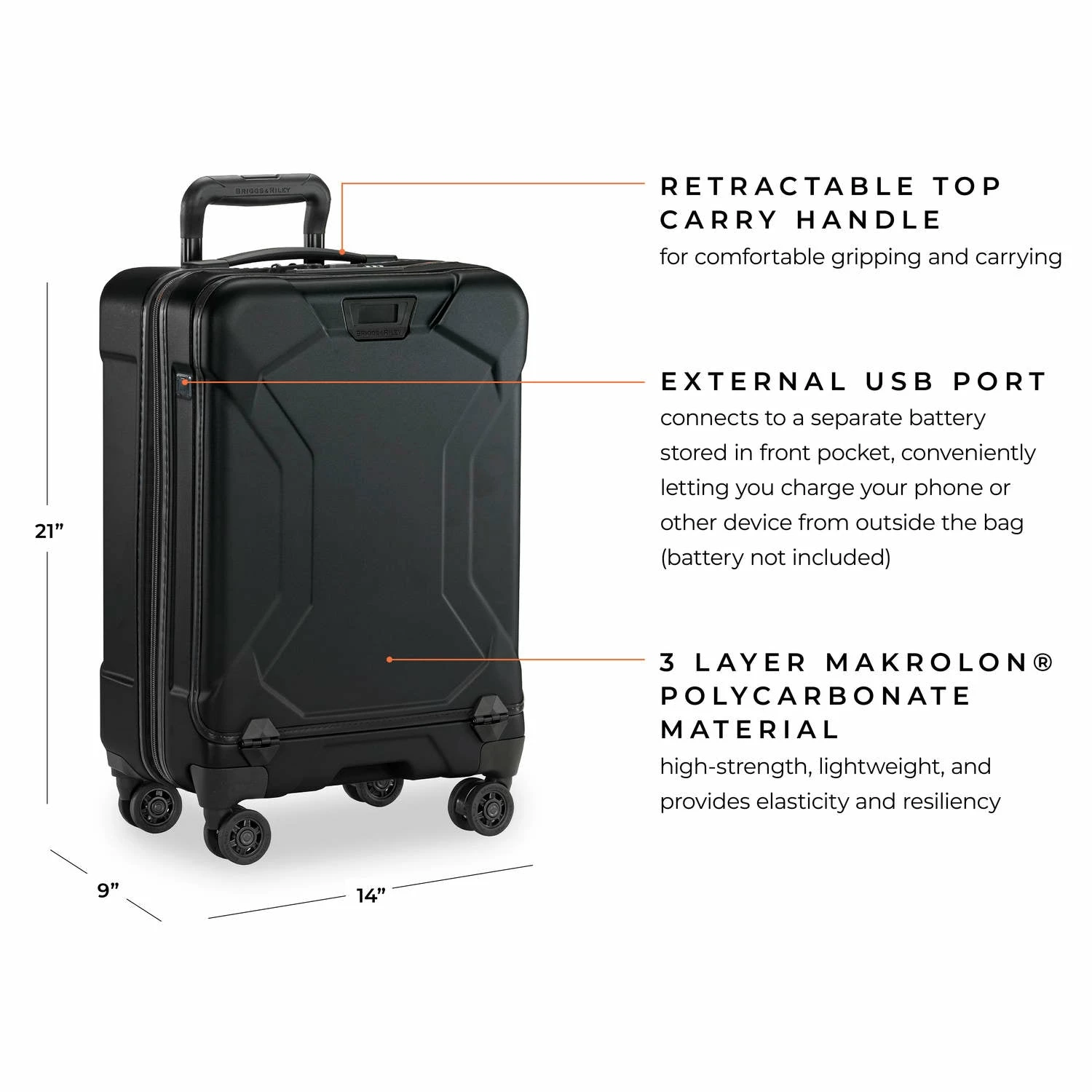 Perfect for your next trip overseas is our Torq International Carry-On Spinner. Featuring an external USB port, you won’t have to worry about running out of battery. And forget trying to wrestle your laptop out of your bag at security; our patented hinged front pocket makes packing electronics and important items a breeze. Battery is not included.